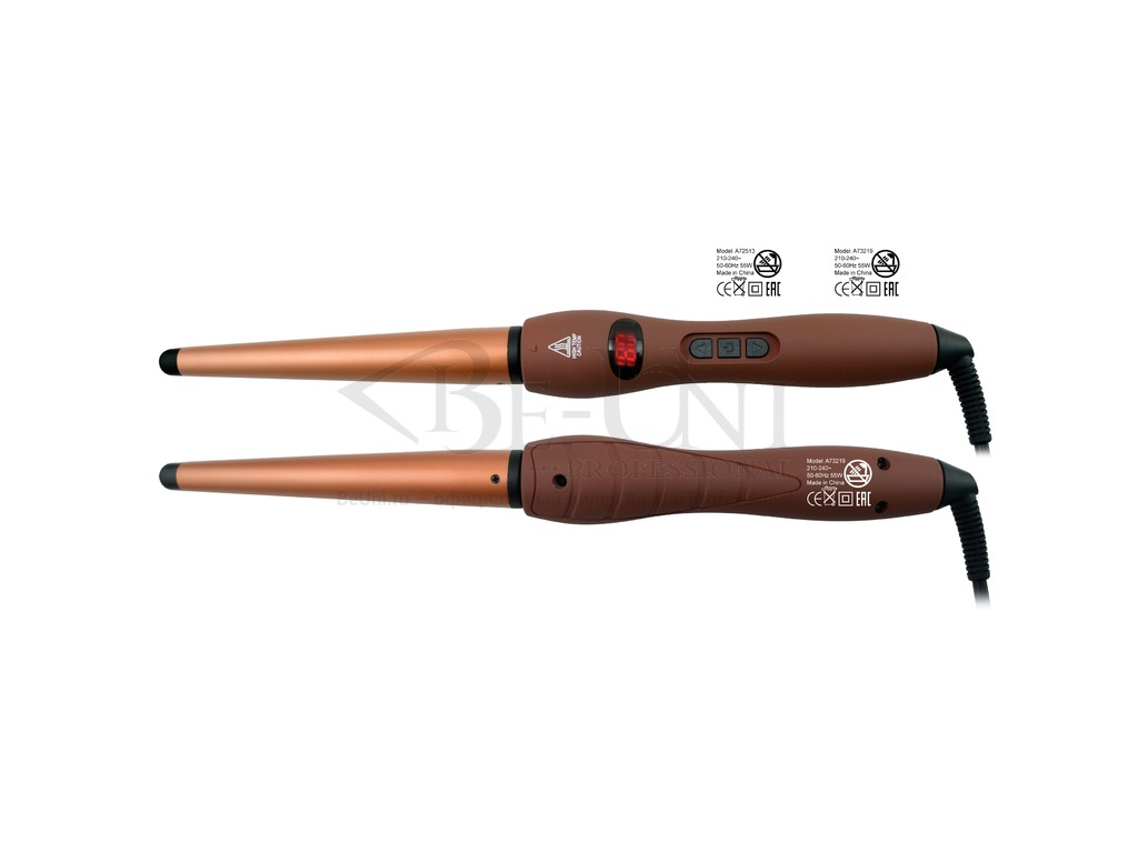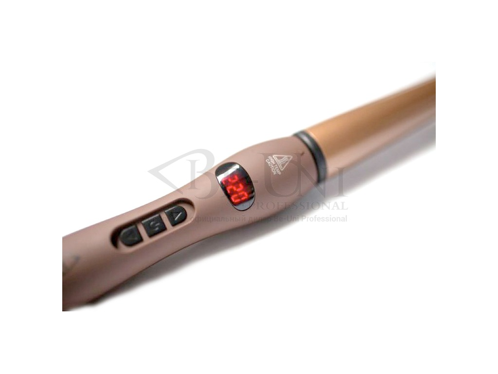 Особенности применения Первоначально перед использованием плойки и созданием локонов, рекомендуется обработать волосы специальным термозащитным средством. За счет размера конуса 13-25 мм, вы сможете выбрать оптимальный диаметр локона. Температура нагрева выбирается индивидуально в зависимости от структуры волоса, для ослабленных выставляется нагрев в 180 градусов, для здоровых 180-200C. Нужно понимать, что для создания максимально стойкого локона требуется высокая температура, рекомендуем использовать дополнительную защиту в виде термоспрея . Правила эксплуатации Подключите шнур к сети питания, нажмите на кнопку включения и удерживайте до того момента, пока не включится световой дисплей. На экране отобразятся цифры, выбирите нужную температуру, инструмент готов к работе. Закончив с укладкой, нажмите на кнопку включения/выключения и удерживайте до выключения дисплея. Протирать покрытие можно любой мягкой тканью, когда плойка еще теплая, иначе есть риск повреждения турмалинового покрытия.