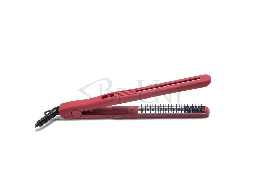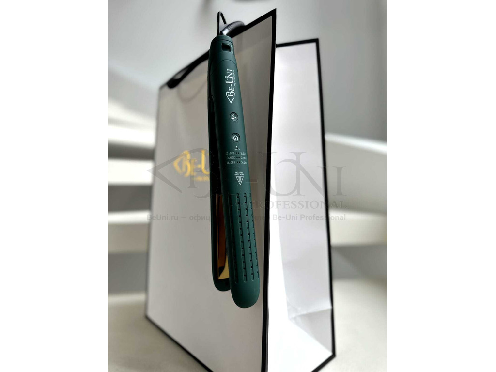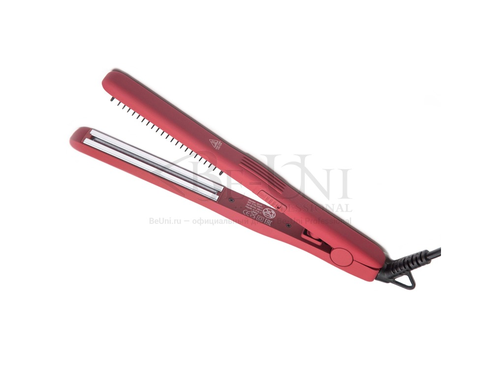 Утюжок-расчёска Be-Uni Professional Q1R — это отличный помощник в целях выпрямления локонов разной длины, также пригодится мужчинам при уходе за бородой и усами. Профессиональное покрытие пластин «зеркальным титаном» дает равномерный нагрев и отличное скольжение. После него ваши волосы будут выглядеть более здоровыми. Ещё плюсом данного покрытия является бережное отношение к локонам. Покрытые турмалином штифты ионизируют волосы, особенно актуально для девушек в зимний период. Прибор поддерживает температуру 210 градусов, таким образом укладку получится сделать намного быстрее. Корпус покрыт Soft Touch Pro покрытием, инструмент надежно лежит в руке и очень удобен во время использования, помимо того обладает противоударными свойствами. Также данное покрытие сохраняет инструмент, защищает его от царапин и повреждений. Длина шнура 2,5 м, и он может крутиться на 360˚, благодаря чему шнур не скручивается, и эксплуатировать инструмент очень комфортно, кроме того работать можно на большом расстоянии от розетки. Важным дополнением является то, что кнопка включения находится сбоку. Теперь ни каких случайных отключений. Особенности применения Перед началом применения советуем тщательно расчесать локоны расчёской. Во время применения утюжка-расчёски зубчики с пластинами следует расположить сверху: это обеспечит лучшее скольжение, уменьшив сопротивление волос, а значит локоны будут выглядеть более гладкими и ухоженными. Кроме того прибор Be-Uni абсолютно безопасен для волос! Титановое покрытие пластин это гарантия износостойкости, помимо этого волосы в процессе укладки меньше повреждаются, приобретая здоровый блеск и красоту. Именно поэтому стайлер можно использовать и для слабых волос! Результат: шикарная стойкая укладка за короткое время! Очень удобно, что можно использовать утюжок-расческу на влажные волосы. Знаменательно что данный стайлер будет очень удобен при укладке усов и бороды: чему способствуют его небольшая ширина и, конечно же, особое строение. Аппарат можно использовать в домашних условиях, и при профессиональном использование барбером в салоне. Уход за инструментом прост протирать влажной салфеткой или слегка влажной тряпочкой. Правила пользования — Подключите прибор к сети электрического питания — Передвиньте курсор включения в противоположную позицию. — Дождитесь, когда загорится LED индикатор и произойдет нагрев прибора — Приступайте к процедуре Примечание: Прибор следует оставлять исключительно на термоустойчивых поверхностях. Не допускайте контакта прибора с кожей (головы или ушей). Хранение: перед тем как ставить прибор на место, подождите, пока он остынет.