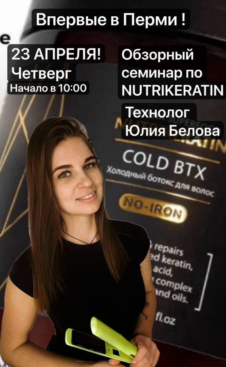 Впервые в Перми! 23 Апреля ( четверг) Обзорный экскурс по продукции NUTRIKERATIN ! Теория и Демонстрация на модели . Технолог NUTRIKERATIN Юлия Белова.