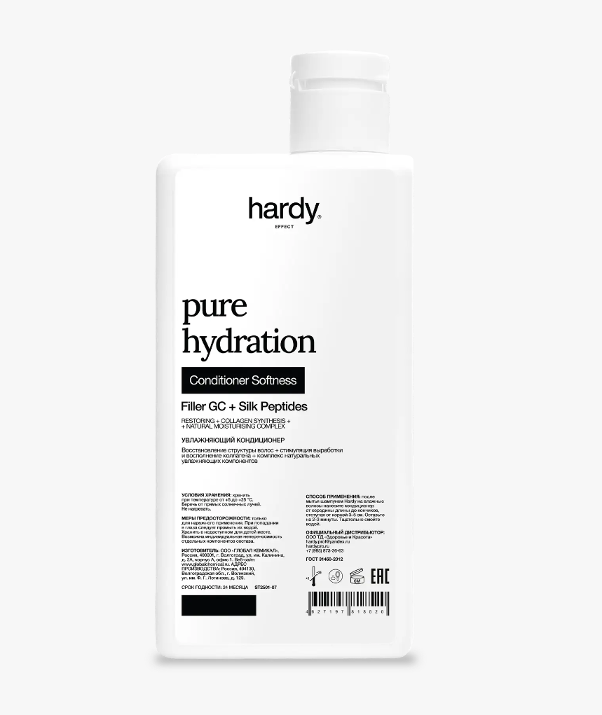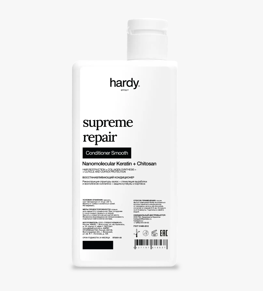 Применение: После мытья шампунем Hardy на отжатые волосы нанесите кондиционер от середины длины до кончиков, отступая от корней 3-5 см. Оставьте на 2-3 минуты. Тщательно смойте водой.