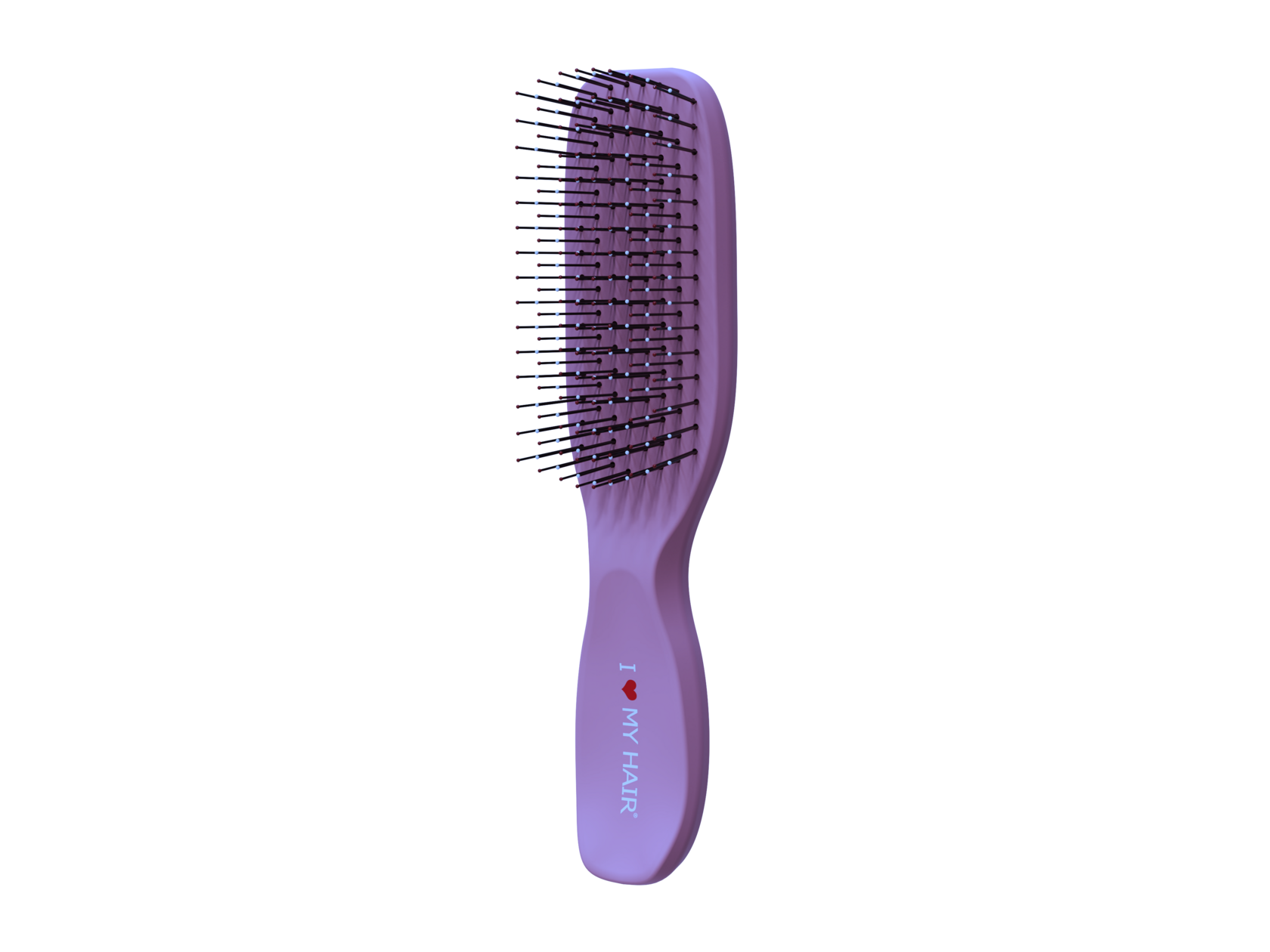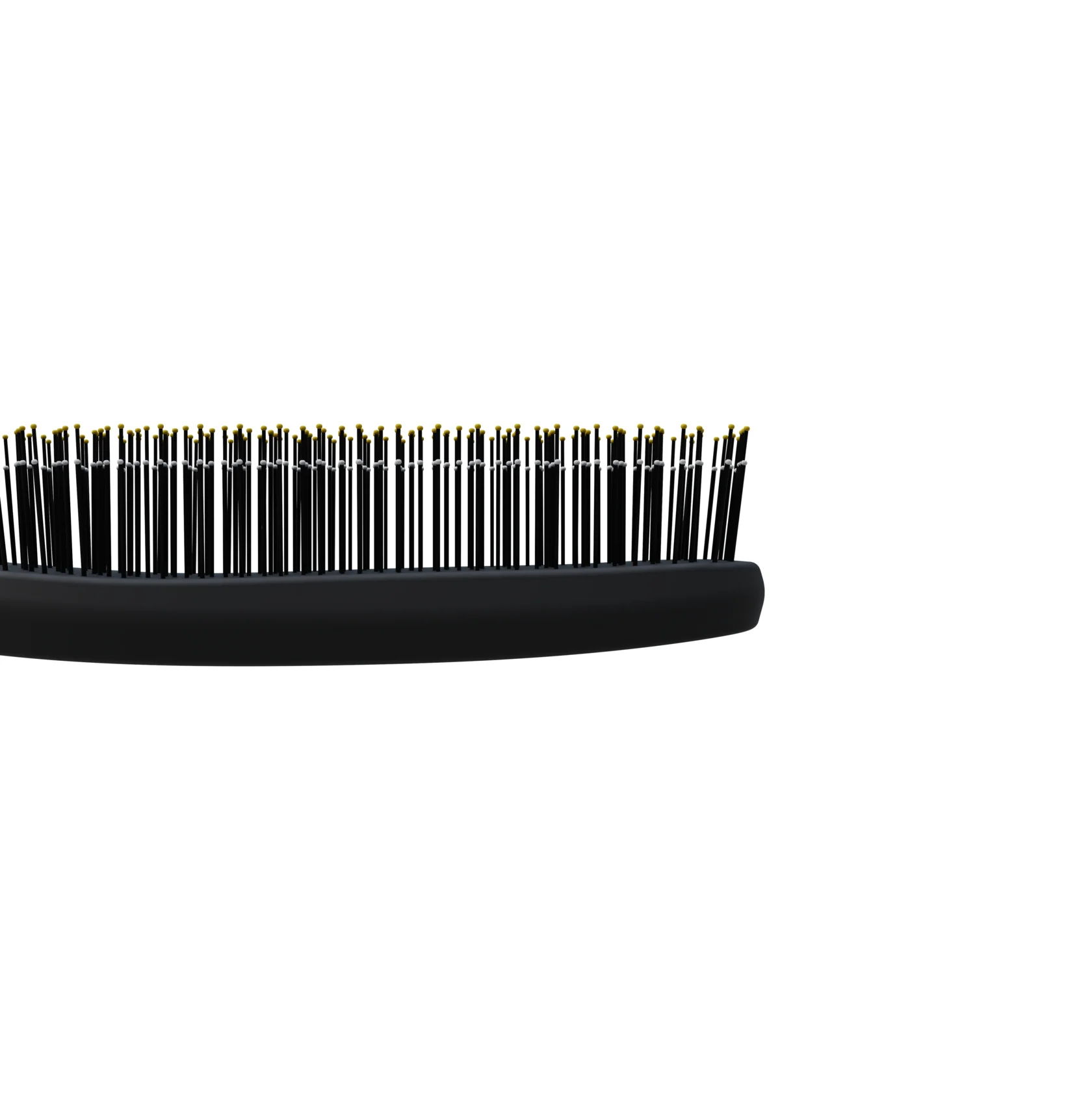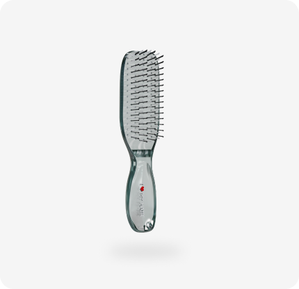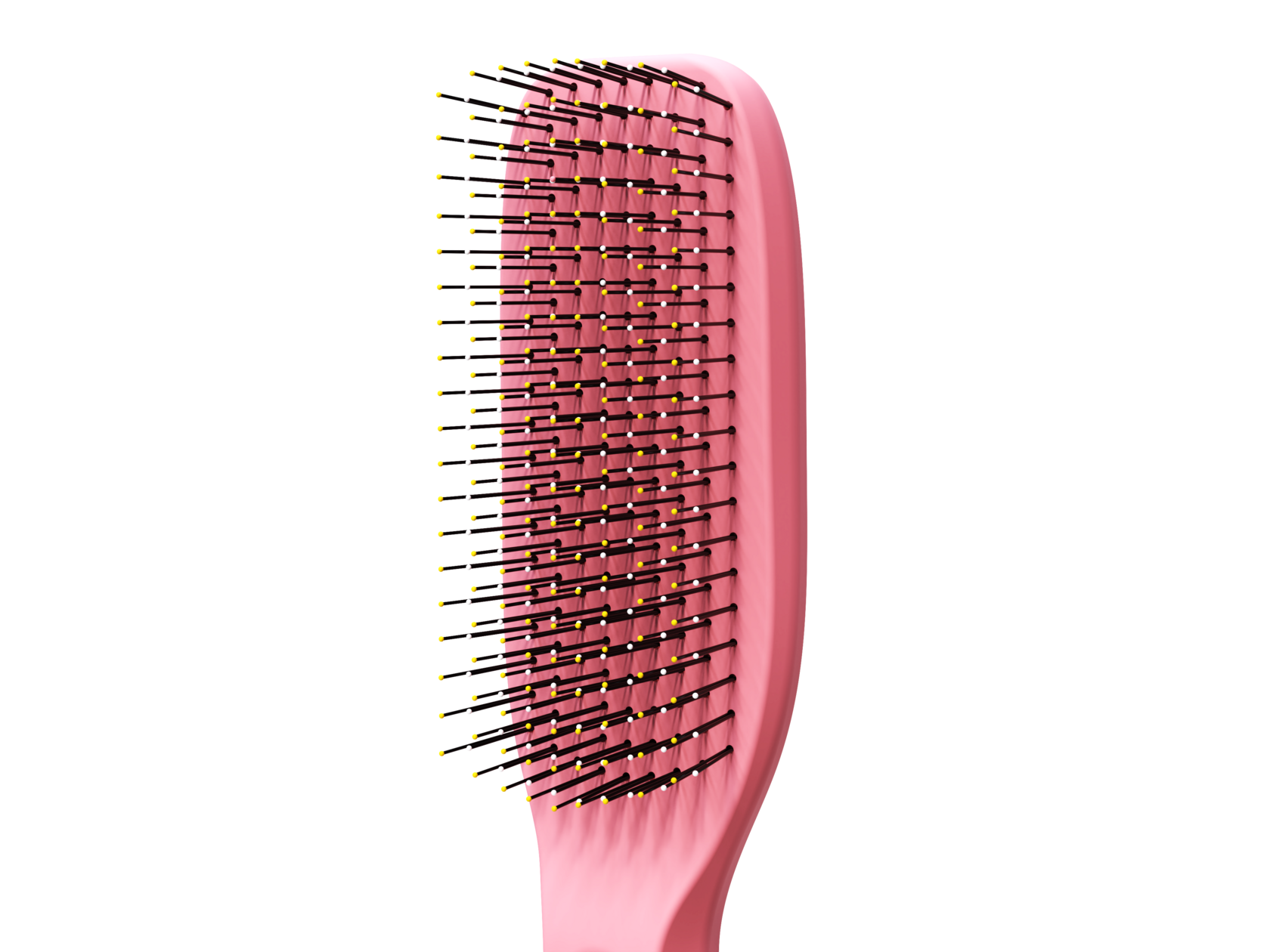 Щетина, созданная с применением биотехнологий, максимально бережно относится к структуре волос: на кончиках всех щетинок имеются защитные шарики, которые обеспечивают комфортное расчесывание, не травмирующее волосы. Подходит для всех типов волос. Имеет удобную форму "лопата" и рукоять с резиновыми вставками для создания антискольщящего эффекта.