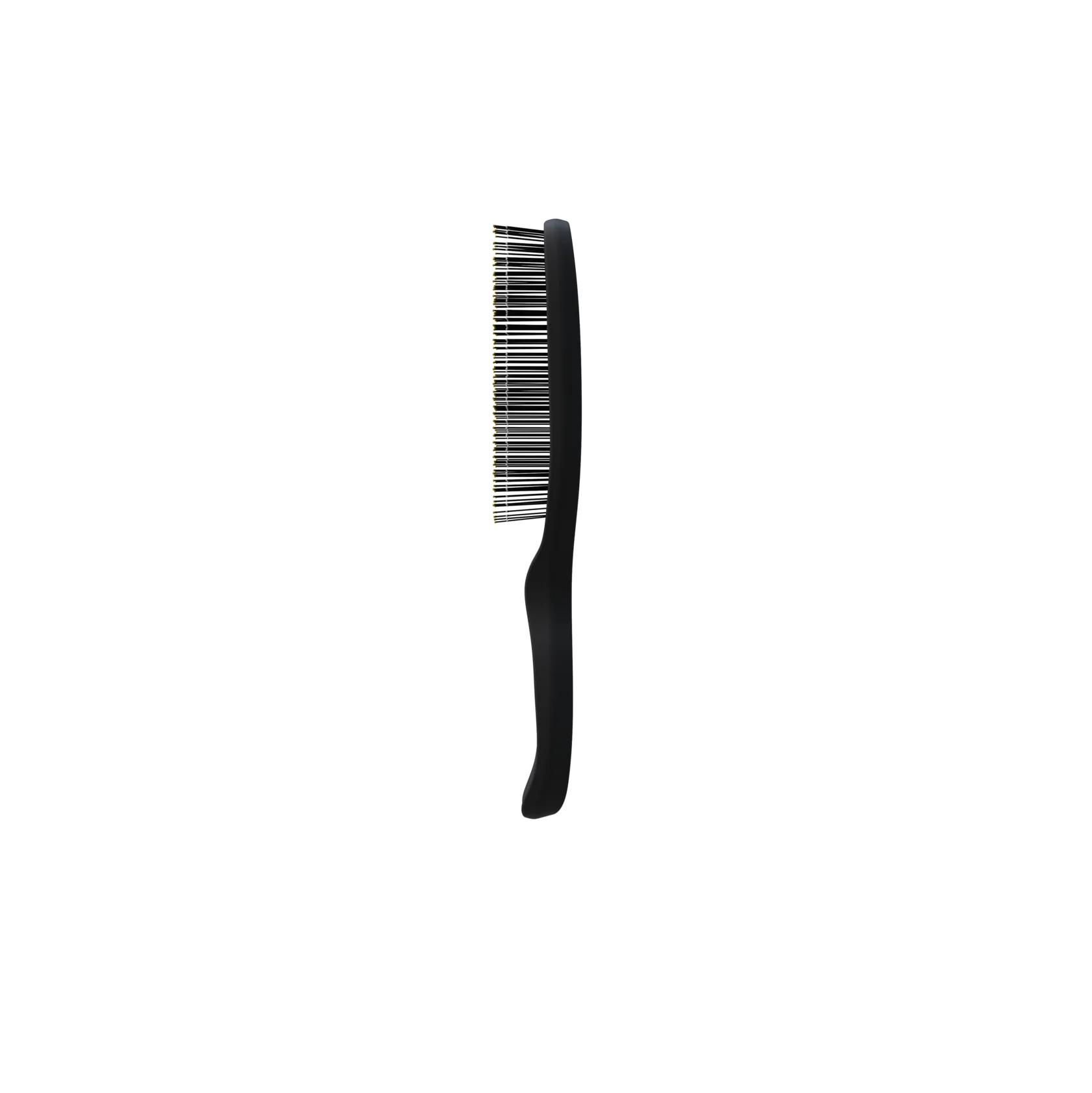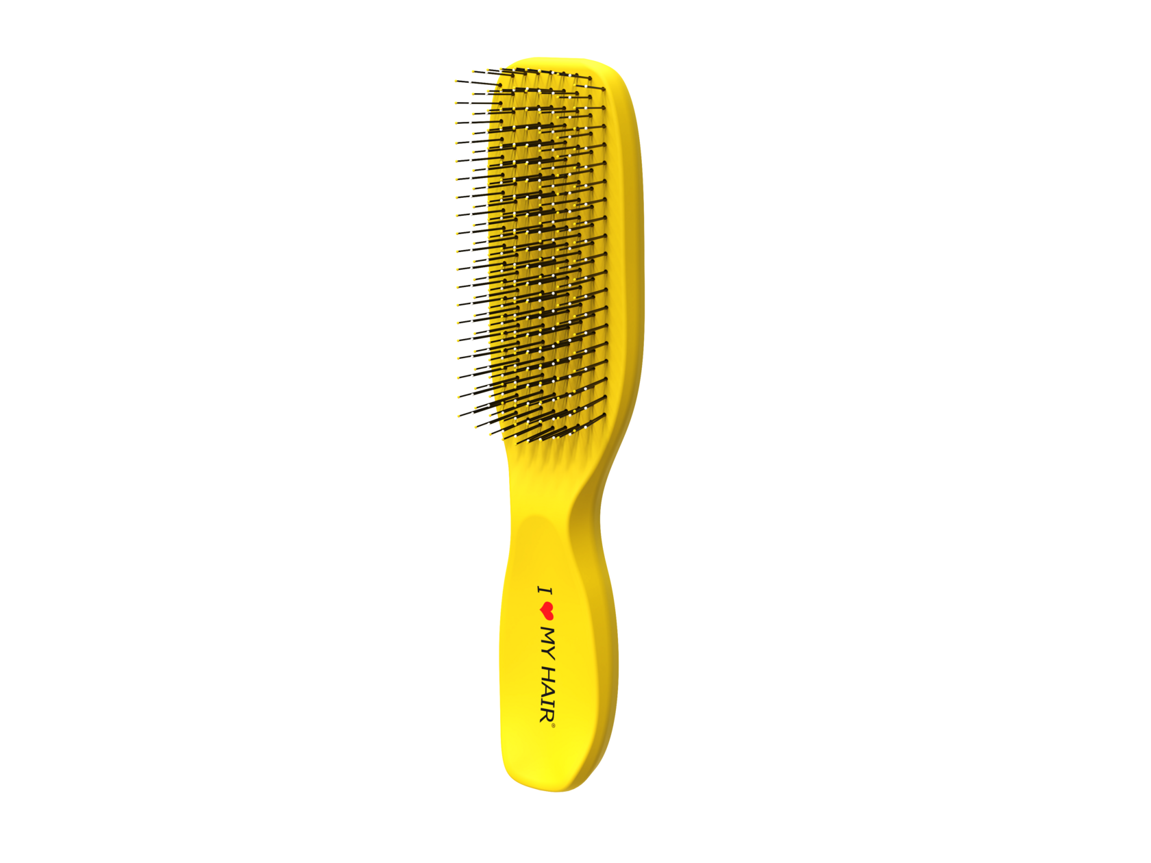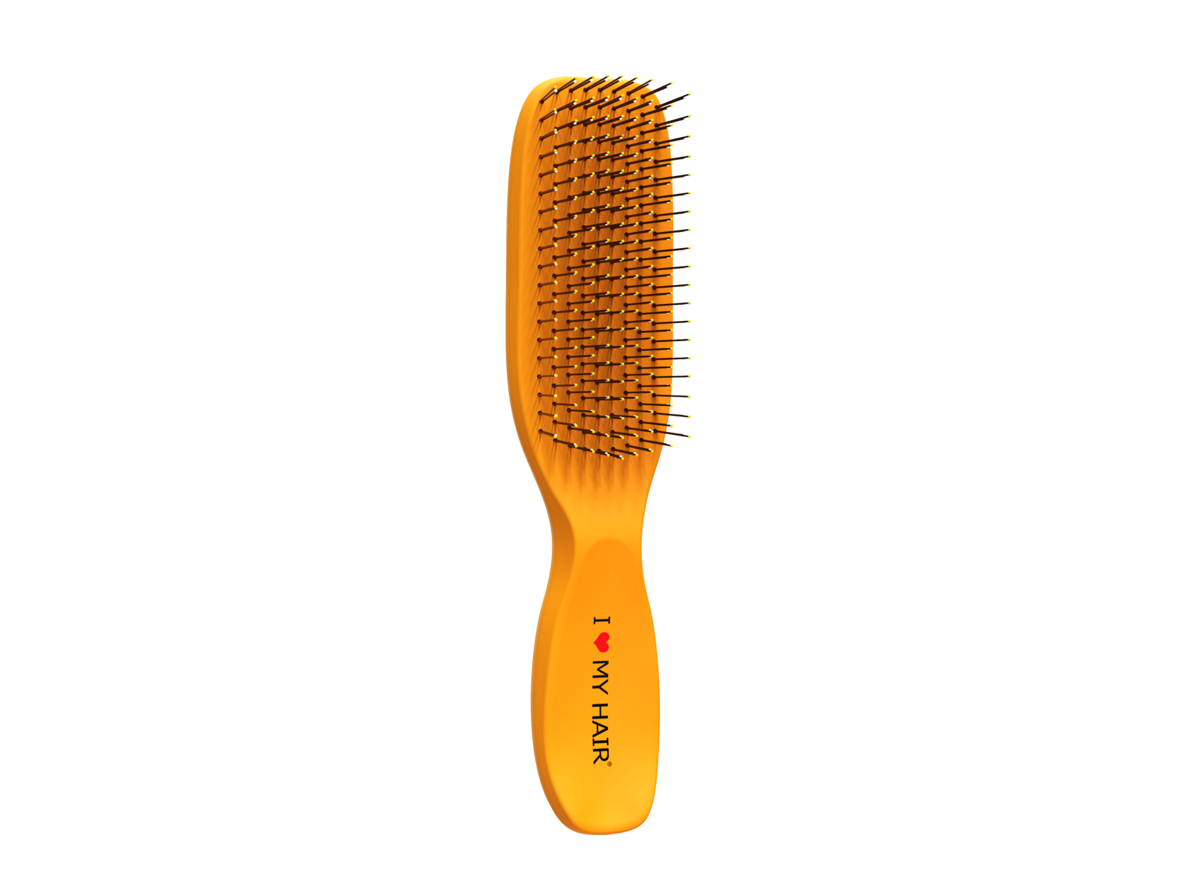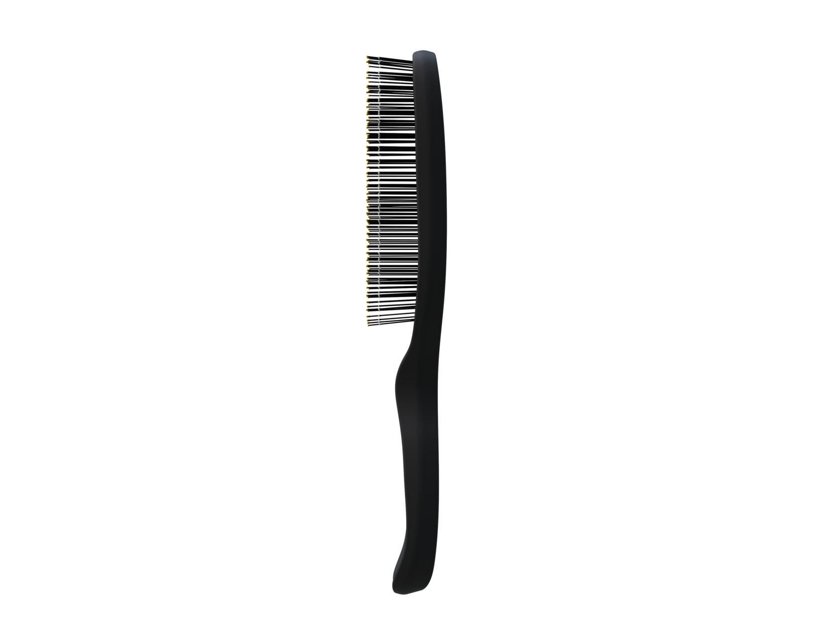Щетина, созданная с применением биотехнологий, максимально бережно относится к структуре волос: на кончиках всех щетинок имеются защитные шарики, которые обеспечивают комфортное расчесывание, не травмирующее волосы. Подходит для всех типов волос. Имеет удобную форму "лопата" и рукоять с резиновыми вставками для создания антискольщящего эффекта.