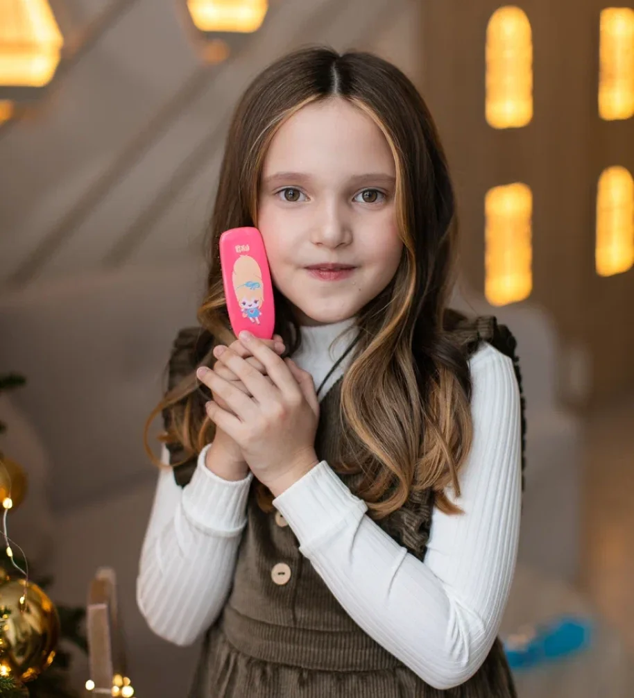 Расческа для волос Prichi детская. Уникальная коллекция специализированных детских щеток для бережного распутывания сухих и мокрых волос. Легко расчешет волосы длинные и короткие, прямые и кудрявые! Нейлоновые щетинки с шариками на концах обеспечивают бережный уход за волосами, не повреждая их структуру. Профессиональная щетка мягко очищает поры на коже головы, обеспечивая свободный доступ кислорода и стимулируя кровообращение, что способствует росту здоровых и крепких волос. Благодаря этому, волосы получают необходимое питание и укрепляются, что предотвращает их выпадение. Использование расчески во время ухода за волосами способствует стимуляции роста волос, делает их здоровыми, крепкими и блестящими. Prichi выполняет много функций. Бережно распутывает самые непослушные кудри без слез, делает нежный и полезный массаж головы. Для причесок и для укладки, создания локонов. Как брашинг для вытягивания или подкручивания челки. Создаст прикорневой объем. Массажная расческа заботится о коже головы и препятствует раздражению. Данная модель, благодаря комфортному расчесыванию, приучит ребенка к опрятности с юных лет. Маленькая расческа идеально помещается в детской ручке: не выскальзывает и удобно ложится даже в самую маленькую ладошку. Расчески женские и детские, для мам и малышей найдут своё место в ванной, прихожей и спальне. Парикмахерские инструменты I love my hair обеспечивают профессиональный уход за волосами. Отличный подарок маме, девочке на день рождения, на новый год, к 8 марта.